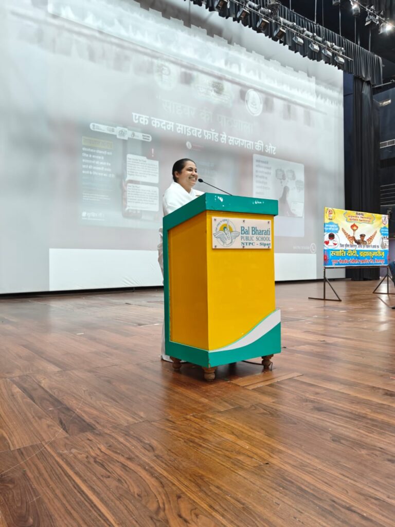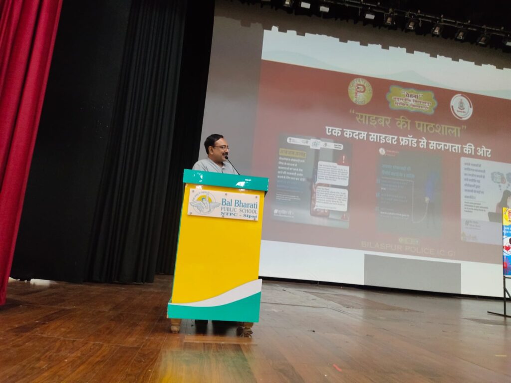 उक्त व्यक्तव्य ब्रह्माकुमारीज़ बिलासपुर के मुख्य सेवाकेंद्र राजयोग भवन के तत्वाधान में बाल भारती स्कूल सीपत के बच्चों की एनटीपीसी सीपत कला निकेतन ऑडिटोरियम में साइबर की पाठशाला के मुख्य अतिथि बिलासपुर पुलिस अधीक्षक रजनेश सिंह जी ने कही। पुलिस अधीक्षक रजनेश सिंह जी ने बताया कि अब बच्चों को स्मार्ट मोबाइल उपयोग करने के पहले उनके पेरेंट्स को एक ऐप दिया जाएगा। जब वह बच्चे उस एप के द्वारा दिए गए कुछ सामान्य प्रश्नों के उत्तर सही देंगे उसके बाद ही उन्हें मोबाइल उपयोग करने के लिए दिया जाएगा। जिससे बचपन से ही बच्चे साइबर फ्रॉड के प्रति सजग रहेंगे और कभी भी उनसे कोई गलती नहीं होगी। आप बच्चे समाज के बहुत महत्वपूर्ण अंग है। आपको सही और गलत को समझना बहुत आवश्यक है। 2000 व्यक्तियों के लिए एक पुलिस कांस्टेबल के ऊपर सुरक्षा की जिम्मेदारी होती है और यह बहुत चुनौती पूर्ण होता है। इसके लिए हम जितना अपराध को कम करेंगे, उतनी ही यह चुनौती कम होगी। पुलिस अधीक्षक से बच्चों ने साइबर से संबंधित अनेक प्रश्न पूछे और उन्होंने उतनी ही सरलता से सभी बच्चों को उनके प्रश्नों का जवाब दिया।