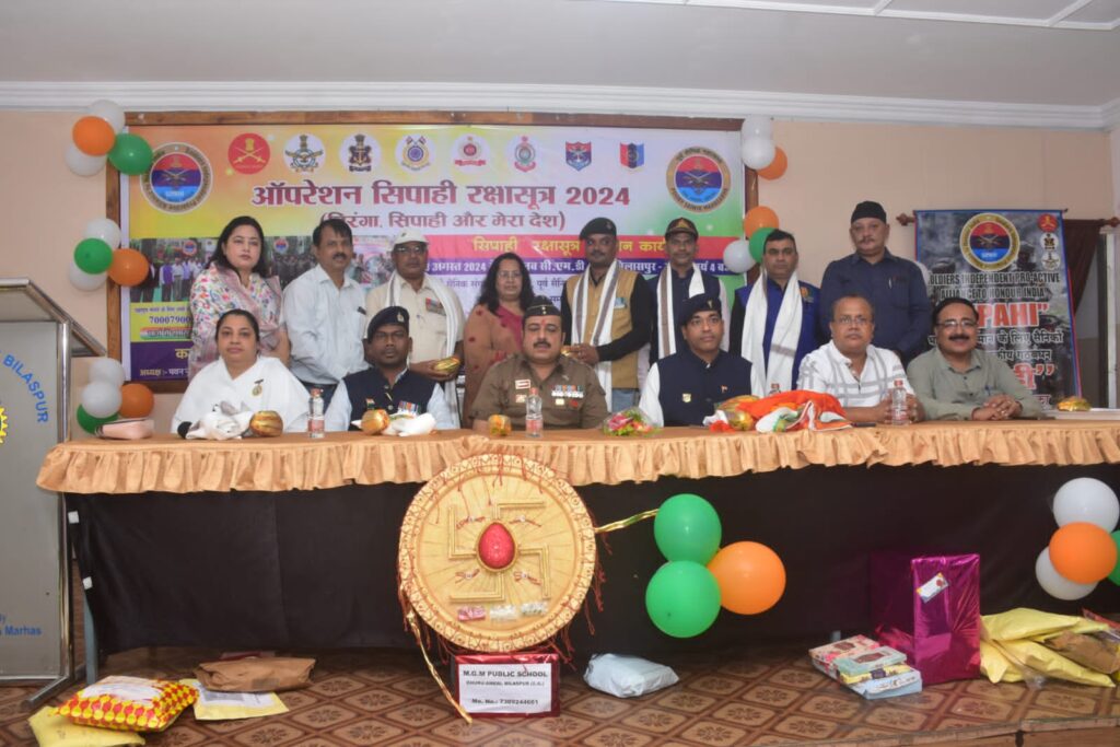 इस कार्यक्रम के आयोजन पूर्व सैनिक महेंद्र प्रताप सिंह राणा जी ने अभियान का उद्देश्य बताते हुए कहा कि पूर्व सैनिक महासभा छत्तीसगढ़ और पूर्व सैनिक संगठन सिपाही विगत वर्ष से रक्षाबंधन पर छत्तीसगढ़ से भारतीय सीमाओं पर रक्षा सूत्र रक्षक कलाइयों तक पहुंचाने का अभियान “ऑपरेशन सिपाही रक्षासूत्र” चला रहा है। जिसमें छत्तीसगढ़ से देश के विभिन्न शहरों से यह अभियान सेना मुख्यालय तक भारत के सैनिकों के लिए राखियां रक्षा सूत्र पहुंचता है। विगत वर्ष 2023 में 6लाख 71हजार रक्षासूत्र सैनिकों तक पहुंचा कर भारतवासियों के देश प्रेम को गौरवान्वित किया है। यह अभियान इस वर्ष 2024 में प्रारंभ हो चुका है। एकत्रीकरण अनावृता जारी है। संग्रहण स्कूल, सामाजिक संगठनों, ग्राम पंचायत, वार्डो से होगा। जिसमें स्कूली बच्चों व जनसाधारण लिफाफा से सिर्फ रक्षा सूत्र, पत्र, स्वयं का पता और “एक चुटकी गांव की मिट्टी” (सैनिकों को तिलक के लिए) रख कर भारतीय सैनिकों को भेजेंगे। रक्षा सूत्र सड़क के रास्ते सेना मुख्यालय तक पहुंचाएंगे। जो सैनिक भाई भारत माता की संतान है और पूरे भारत के परिवार है जो सबकी रक्षा के लिए बहुत दूर-दूर स्थान पर है तो उनके पास इस रक्षा सूत्र को पहुंचाने के लिए बाय रोड ही सभी की राखियां बहनों की व्याख्या एकत्रित करके पहुंच जाने का कार्य करके बहुत खुशी मिलती है। इस अभियान में सैनिकों के लिए रक्षा सूत्र कोई भी राष्ट्रभक्त नागरिक प्रेषित कर सकता है। यह रक्षा सूत्र का मार्ग रायपुर, दुर्ग, राजनांदगांव, खैरागढ़, कवर्धा, मुंगेली, बिलासपुर, अंबिकापुर, रामानुजगंज, पटना, छपरा, बलिया, मऊ, गोरखपुर, अयोध्या, लखनऊ, इटावा, आगरा, मथुरा, दिल्ली तक रहेगा। राणा जी ने सभी उपस्थित समाज सभी सेवा संगठन ,भाजपा महिला मोर्चा,विद्यालयों, शालायों एवं ब्रह्माकुमारी बिलासपुर मुख्य सेवाकेंद्र संचालिका स्वाति दीदी का धन्यवाद किया।