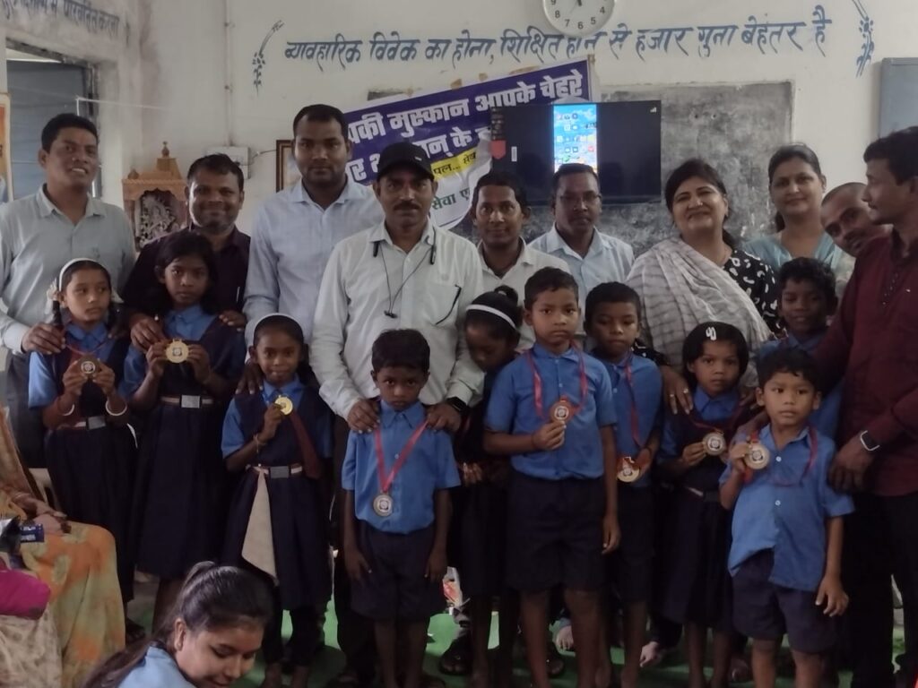 होनहार बच्चों को सेवा एक नई पहल संस्था द्वारा मेडल पहनाए गए.
