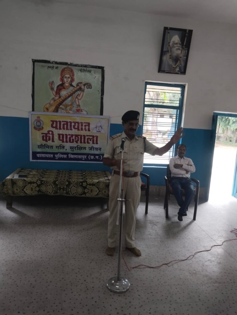 आज दिनांक 6, 8, 2024 को राष्ट्रीय पाठशाला हाई स्कूल बिलासपुर में यातायात के सब इंस्पेक्टर उमाशंकर पांडे, आरक्षक भुनेश्वर, रोशन एवं भानू के द्वारा यातायात की पाठशाला लगाई जाकर छात्र-छात्राओं को सुरक्षित यातायात के प्रति जागरूक किया गया l