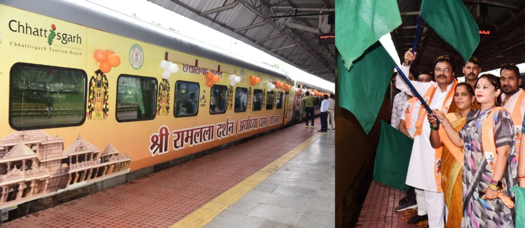 बिलासपुर, 6 अगस्त/ 2024/ श्री रामलला दर्शन येाजना के तहत आज संभाग के 850 श्रद्धालुओं को लेकर भारत गौरव स्पेशल ट्रेन रवाना हुई। जिला पंचायत अध्यक्ष श्री अरुण सिंह चौहान ने हरी झंडी दिखाकर किया रवाना। जिला पंचायत सीईओ श्री आर पी चौहान , निगम कमिश्नर श्री अमित कुमार इस अवसर पर मौजूद रहे। बिलासपुर जिले से 225 श्रद्धालु अयोध्या धाम की यात्रा पर निकले है। श्री रामलला दर्शन योजना के प्रति लोगों में जबरदस्त उत्साह है। दर्शन के लिए जा रहे श्रद्धालुओं का स्टेशन में भव्य स्वागत किया गया। इस दौरान जय श्रीराम के जयकारे के साथ पूरा स्टेशन परिसर राममय हो गया। दर्शन के लिए जा रहे लोगों ने सरकार का आभार जताया।