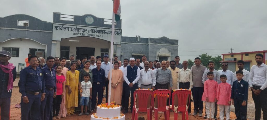 आज दिनांक 15/08/2024 को भारत का राष्ट्रीय पर्व 78वां स्वतंत्रता दिवस का समारोह तहसील कार्यालय सकरी में सम्मान पूर्वक, हर्षोल्लास के साथ मनाया गया , यहां अश्वनी कंवर तहसीलदार सकरी के द्वारा,ना.तहसीलदारद्वय राकेश ठाकुर, रुचिका अग्रवाल ,समस्त तहसील स्टाफ,राजस्व निरीक्षकों, पटवारियों, गणमान्य नागरिकों एवं कोटवारगणों की उपस्थिति में ध्वजारोहण का कार्य राष्ट्रगान के साथ हर्षोल्लास सहित संपन्न हुआ।इस अवसर पर तहसीलदार अश्वनी कंवर के द्वारा देशभक्ति गीत का गायन कर उपस्थित सभी लोगों का भरपूर मनोरंजन भी किया गया।