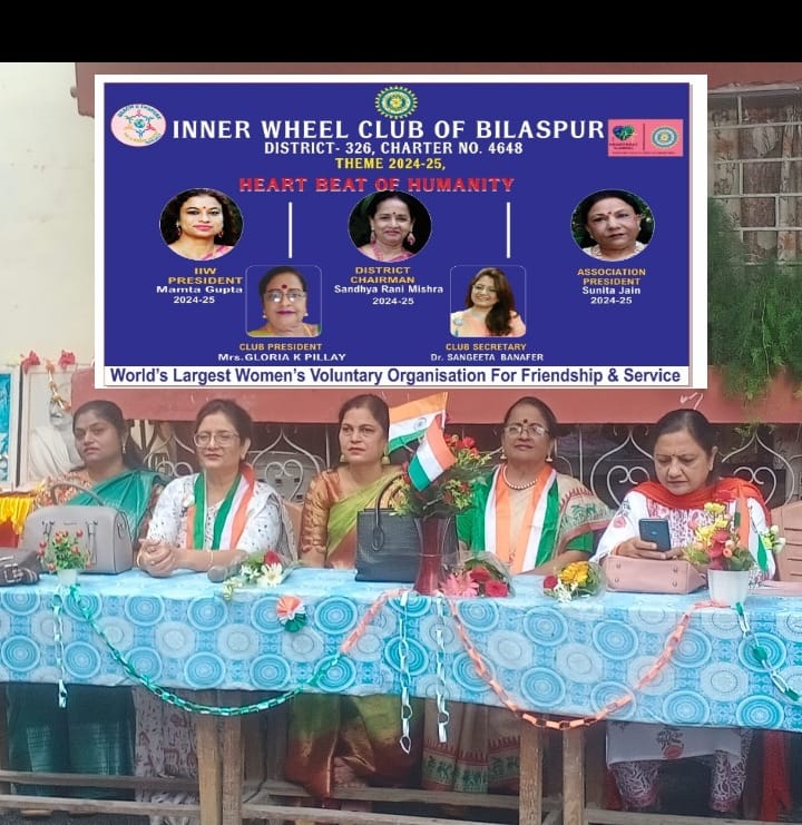 बिलासपुर/इनरव्हील क्लब द्वारा संदीपनी हायर सेकेंडरी स्कूल रिंग रोड में ध्वजारोहण कर आजादी की 78 वीं वर्षगांठ धूमधाम से मनाया गया।