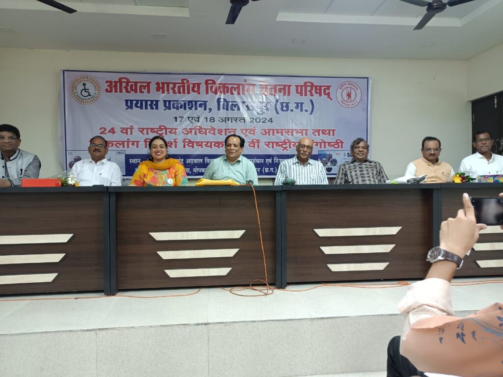 बिलासपुर- अखिल भारतीय विकलांग चेतना परिषद् एवं प्रयास प्रकाशन बिलासपुर के संयुक्त तत्वावधान में आयोजित ‘विकलांग विमर्श : अस्तित्व का संघर्ष’ नामक विषय पर दो दिवसीय राष्ट्रीय संगोष्ठी का समापन आज न्यायमूर्ति चंद्रभूषण वाजपेई के मुख्य आतिथ्य, राष्ट्रीय कार्यकारी अध्यक्ष डॉ.विनय कुमार पाठक की अध्यक्षता एवं डॉ श्याम लाल निराला (प्राचार्य), डॉ. धर्मभूषण श्रीधर गौरहा, शिक्षाविद् शिवशंकर सिंह के विशेष अतिथ्य में सोत्सव संपन्न हुआ । गीता देवी रामचंद्र अग्रवाल नि:शुल्क अस्पताल एवं अनुसंधान केन्द्र मोपका के परिसर में संबोधित करते हुए बाजपेई जी ने कहा कि जहां इस परिषद् के माध्यम से विकलांग विमर्श की शुरुआत की बात कही, वहीं डॉ. डी.पी. अग्रवाल को इस विमर्श का पुरोधा डॉ. विनय कुमार पाठक को प्रवर्तक के रूप में प्रस्थापित किया । डॉ. पाठक ने इस 13 वीं राष्ट्रीय संगोष्ठी में छ: प्रदेश के शिक्षाविदों, समीक्षकों, शोधार्थियों और समाज सेवियों की सहभागिता को अविस्मरणीय निरूपित करते हुए इस ग्रंथ को दीनदयाल यादव के संपादन में प्रकाशित करने की घोषणा की । डॉ. चन्द्रशेखर सिंह ने ‘हौसले के आईने में ज़िन्दगी के मायने: संदर्भ विकलांग विमर्श’ विषय पर सारगर्भित व्याख्यान दिया । डॉ. रामशंकर भारती (झांसी) ने विकलांग विमर्श संबंधित व्यावहारिक पक्ष को रखा । डॉ.अखिलेश तिवारी, डॉ अनिता सिंह, डॉ. अनिता ठाकुर ने भी अपनी बात रखी । इस महत्वपूर्ण विमर्श कार्यक्रम में कवियों के काव्य पाठ को प्रशंसा मिली। उल्लेखनीय है किइन चुनिंदा कवियों को संपादित करके डॉ.प्रीति प्रसाद ने प्रकाशित करने की घोषणा की । मदनमोहन अग्रवाल राष्ट्रीय महामंत्री ने इस राष्ट्रीय संगोष्ठी को अति महत्वपूर्ण निरुपित किया । राजेन्द्र अग्रवाल राजू ने मंच संचालन करते हुए सभा में पधारे सभी अतिथियों का पुष्प गुच्छ से स्वागत किया । डीपी गुप्ता संगठन मंत्री, राजेश पाण्डेय संगठन मंत्री, राजू सुल्तानिया राष्ट्रीय मंत्री ने अतिथियों को स्मृति चिन्ह प्रदान कर सम्मानित किया। रायपुर से पधारे राष्ट्रीय मार्गदर्शक विरेन्द्र पाण्डेय जी ने इस संस्थान में निरंतर शल्यक्रिया की जा सके इसके लिए सरकार से अनुमति प्रदान करने की बात कही। सत्येन्द्र अग्रवाल प्रांतीय अध्यक्ष रायपुर ने आगामी परिचय सम्मेलन एवं दिव्यांग जनों का सामूहिक विवाह रायपुर में होने की बात कही । शक्ति से रामावतार अग्रवाल, अमर अग्रवाल, कन्हैया गोयल, डॉ. सुरेश माहेश्वरी (अमलनेर), मुरारी लाल परमार, बीएल गोयल, आभा गुप्ता, डॉ. संगीता बनाफर, विष्णु कुमार तिवारी, हेमंत गौर, तुलसी देवी तिवारी, बसंती वर्मा , रश्मि लता मिश्रा, संतोष कुमार शर्मा, रमेशचंद्र श्रीवास्तव, गिरिजा शंकर कुशवाह की गर