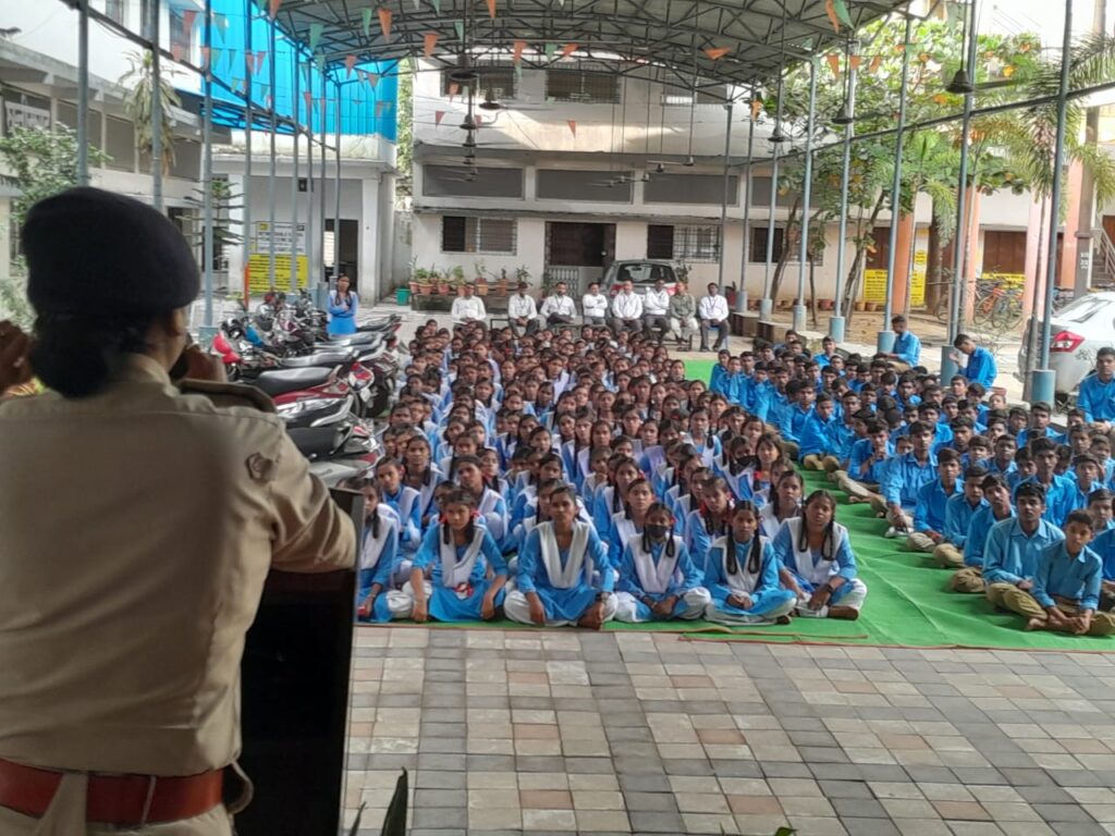 कार्यक्रम की शुरुआत अतिरिक्त पुलिस अधीक्षक नीरज चंद्राकर जी के द्वारा रचित गीत से की गई। अतिरिक्त पुलिस अधीक्षक गरिमा द्विवेदी जी ने बच्चों को विभिन्न प्रकार के अपराधों से बचने के उपाय बताएं और इन अपराधों से दूर रहने की बात भी समझाया ।छात्र विद्यालय में रखे हुए सुझाव पेटी या शिकायत पेटी में अपनी बात स्पष्ट रूप से लिखकर देने की बात कही।