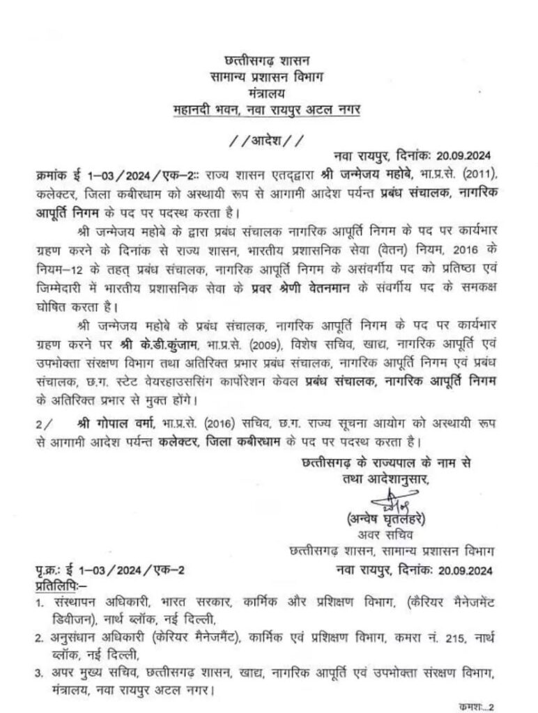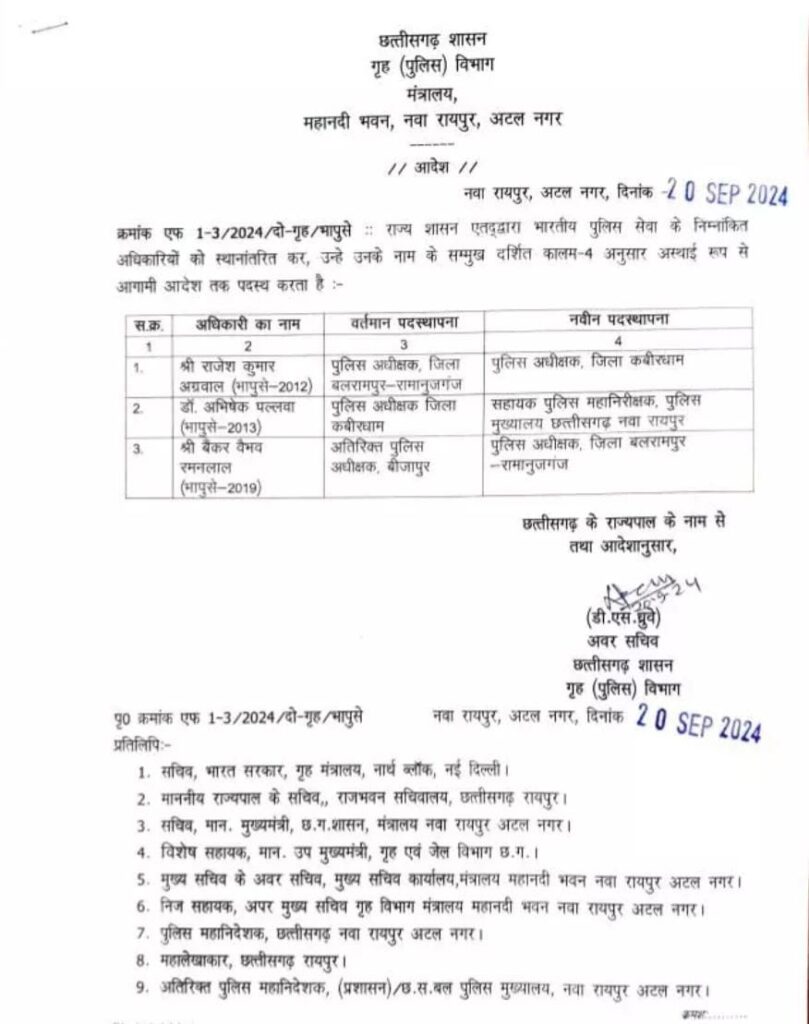 छत्तीसगढ़ के कबीरधाम में हुई हिंसा मामले में राज्य सरकार ने बड़ा एक्शन लिया और कबीरधाम कलेक्टर एसपी को हटा दिया है पुलिस अधीक्षक डॉक्टर अभिषेक पल्लव को पुलिस मुख्यालय में पदस्थ कर दिया गया है और उनकी जगह बलरामपुर जिले के एसपी राजेश अग्रवाल को कवर्धा का नया पुलिस कप्तान बनाया गया।